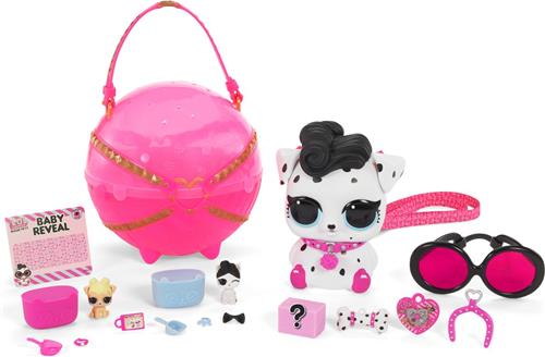 De Dollmation Dalmatier kan worden gedragen als een rugzak of zelfs worden gebruikt als spaarvarken. Met de inbegrepen donkerroze draagtas kan je hem overal mee naartoe nemen. Verken de Eye Spy Series en help de L.O.L. Surprise!-poppen hun verdwenen huisdier terug te vinden. Ontgrendel 15 verrassingen met de Biggie Pets bal en ontdek of je 2 of 3 baby's zult krijgen, of misschien zelfs een voedselbaby!