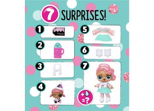 | Verpakkingsinhoud | (1) geheim bericht, (2) drinkbeker, (3) outfit, (4) outfitaccessoire, (5) schoenen, (6) verzamelsticker, (7) LOL Surprise Winter Chill™ limited edition-pop, (8) kerstversiering en display |
