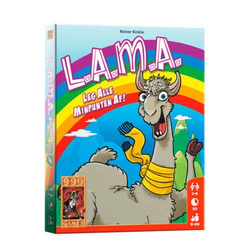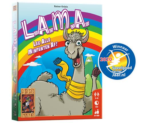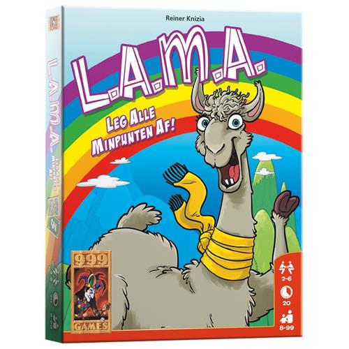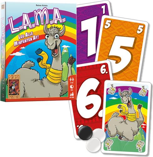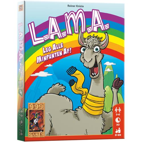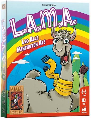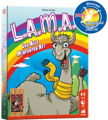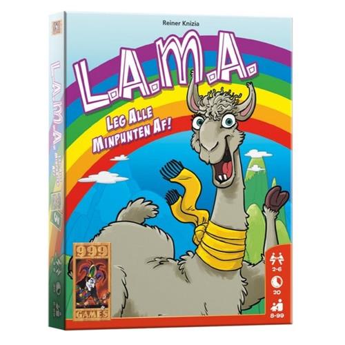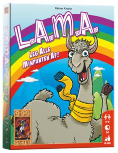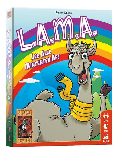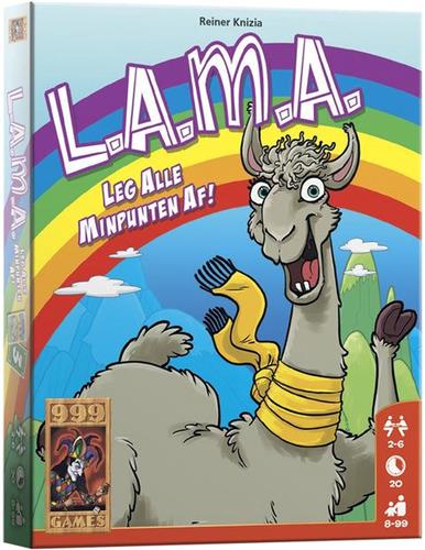 L.A.M.A. is een grappig en toegankelijk kaartspel waarbij het motto is: Leg Alle Minpunten Af. Elke beurt probeer je kaarten af te leggen, anders krijg je minpunten in de vorm van fiches. Als het je lukt om al je kaarten kwijt te raken, mag je een fiche teruggeven, met de optie om er één van waarde 1 of van waarde 10 te kiezen. De speler met de minste minpunten wint aan het einde van het spel. Het spel is geschikt voor 2-6 spelers vanaf 8 jaar en heeft een speelduur van 20 minuten.