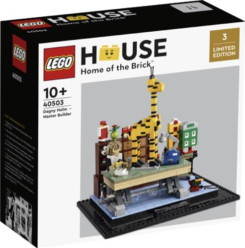 De LEGO 40503 Dagny Holm Master Builder wordt uitgebracht ter ere van Dagny Holm die de eerste Master Builder was van LEGO. Dagny Holm was een nicht van de oprichter van LEGO, Ole Kirk Kristiansen. In 1936 liep Dagny Holm kort stage bij The LEGO Group. Na drie maanden verhuisde ze naar Kopenhagen waar ze 25 jaar heeft gewoond. Ze genoot daar de opleiding Classical Sculpture Design. In 1961 keerde ze terug naar Billund om bij LEGO aan de slag te gaan als Master Builder. Ze heeft tot 1986 bij The LEGO Group gewerkt waarna ze met pensioen ging op 70-jarige leeftijd. Dagny Holm overleed op 1 maart 2004, precies 18 jaar later lanceert LEGO deze nieuwe set. Ze was tijdens haar werkende leven bij LEGO onder andere verantwoordelijk voor de LEGOLAND en Miniland modellen, maar ook voor de iconische LEGOLAND trein. Ze was binnen The LEGO Group bekend om haar bijzondere manier van denken in LEGO blokjes, waardoor de modellen die ze bedacht beter tot hun recht kwamen. De LEGO bestaat uit een werktafel met daarop modellen zoals die ook in Miniland te vinden zijn. Er is een bouwbaar figuur van Dagny Holm die aan het iconische model van de LEGOLAND giraf werkt. De werktafel kan omhoog en omlaag gebracht worden. Rondom de werktafel zijn diverse iconische modellen te vinden, zoals de eend, een aantal Miniland huizen en in de kast vind je o.a. een trein. De set bestaat uit 1068 onderdelen waaronder er een aantal met exclusieve prints. De set is 25cm breed, 19cm diep en 14.5cm lang. De set is de derde LEGO House Limited Edition.