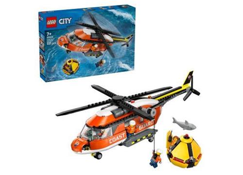 De bouwset omvat 551 onderdelen, waarmee kinderen niet alleen de helikopter kunnen bouwen maar ook de reddingscapsule. Dit geeft toegang tot het interieur en laat kinderen een bemanningslid naar beneden takelen met de werkende lier. Met vier minifiguren, inclusief een piloot, twee kustwachtmedewerkers en een burger, plus een haaienfiguur, zijn de speelmogelijkheden eindeloos.