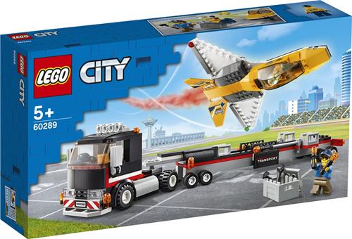Laat de fantasie van kinderen tot grote hoogten stijgen met deze LEGO® City Vliegshowjettransport (60289) set. De set bevat een transporttruck met aanhanger en een stoer speelgoedvliegtuig met verstelbare staartvleugels en een getinte cockpit. Met minifiguren van een piloot en een chauffeur en diverse coole accessoires zijn ze klaar voor supersonische avonturen. Spannend voor kinderen vanaf 5 jaar.