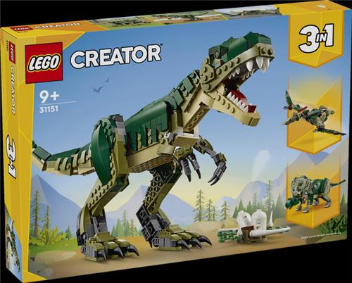- Bij Bol.com kun je LEGO Creator 3in1 T. rex, dinosaurus 31151 kopen voor de prijs van € 42,49. Dit is vandaag de goedkoopste webshop.