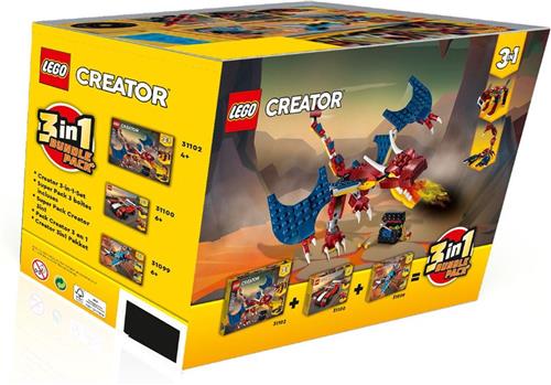 Ontdek eindeloos bouwplezier met het LEGO Creator Bundle Pack 3-in-1, dat de sets 31099, 31100 en 31102 omvat. Dit pakket biedt de mogelijkheid om verschillende creaties te bouwen, zoals een spectaculaire vuurdraak, een snelle sportwagen en een spannend propellervliegtuig. Laat je fantasie de vrije loop en maak de meest geweldige constructies met de 796 kleurrijke onderdelen die in dit pakket zijn inbegrepen.