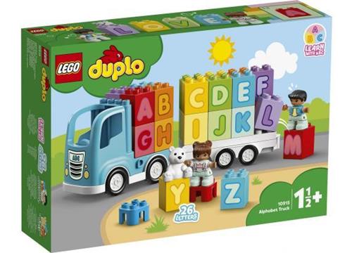Met de LEGO® DUPLO® Alfabet vrachtwagen kunnen jonge kinderen op een creatieve manier letters leren terwijl ze spelen. Deze vrachtwagen is het ultieme leerzame speelgoed voor peuters. Door de 26 letterstenen te stapelen, verbeteren peuters hun fijne motoriek en maken ze kennis met het alfabet op een speelse manier. Tijdens fantasierijke avonturen met de jongen, het meisje en de beer ontwikkelen ze hun visuele en ruimtelijke bewustzijn.