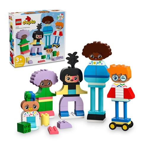 Vul de speeltijd van peuters vanaf 3 jaar met plezier en creativiteit met LEGO DUPLO Stad Mensen en hun emoties (10423). Nieuwsgierige peuters ontdekken dat mensen in alle soorten en maten bestaan en dit educatieve speelgoed helpt ze te begrijpen dat we er misschien heel verschillend uitzien, maar toch allemaal vrienden kunnen zijn. Deze set bevat 71 stenen en onderdelen om 5 bouwbare personages te maken, waaronder 5 pruikstenen en 1 wielbasis. De verbeelding van peuters groeit terwijl ze lichamen, benen, gezichten en kapsels combineren om een eindeloze reeks vriendelijke personages te maken.