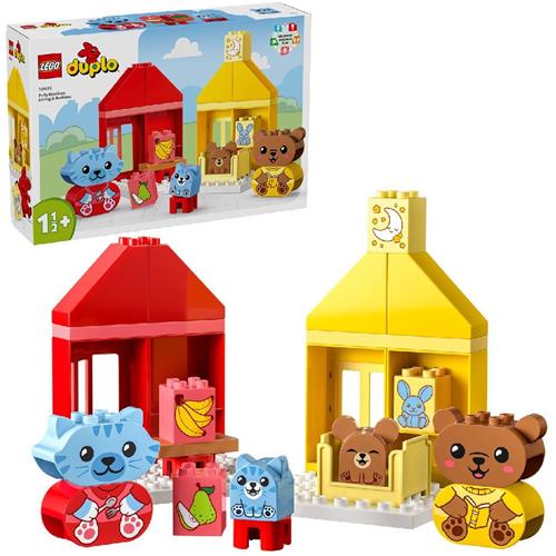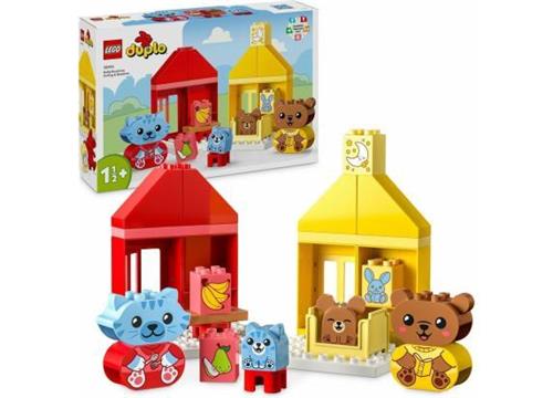 Help peuters hun gevoelens te verkennen met LEGO DUPLO Mijn eerste dagelijkse gewoontes – eten en slapen (10414). Dit leuke, educatieve speelgoed voor peuters vanaf 18 maanden wordt geleverd met 4 herkenbare speelgoed dieren figuren. Bedtijd en etenstijd kunnen lastige momenten zijn voor kleintjes, maar met dit peuterspeelgoed kunnen ze uiten hoe ze zich voelen tijdens deze activiteiten. De set bevat 2 schattige DUPLO dieren families bestaande uit een ouder en een kind. De kitten en berenwelp hebben 2 gezichtsuitdrukkingen – de ene blij, de andere verdrietig – waardoor peuters die nog niet kunnen praten gemakkelijk kunnen laten zien hoe ze zich voelen.