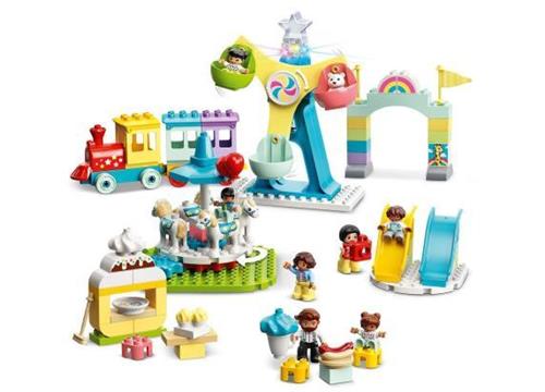 Dit pretpark met boordevol functies biedt kinderen vanaf 2 jaar onbeperkt en leerzaam speelplezier en zorgt ervoor dat ouders waardevolle mijlpalen in de ontwikkeling van hun kind kunnen meemaken. De speelset is ca. 28 cm hoog, 123 cm breed en 28 cm diep. Je kunt hem op verschillende manieren indelen en combineren met ander LEGO® DUPLO® speelgoed. In de bouwinstructies vind je een leuk stripverhaal met elementen uit de set voor extra plezier tijdens het creatieve bouwproces en fantasierijke spel. Alle LEGO® DUPLO® speelsets zijn vakkundig ontworpen en zitten vol fantasierijke functies die kinderen aanzetten tot spelenderwijs leren, samen met hun ouders.