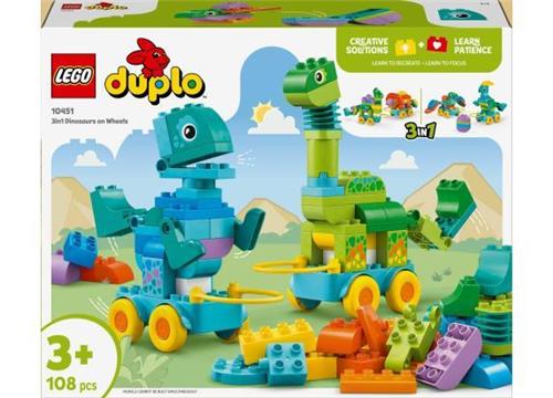 - Bij Bol.com kun je LEGO® DUPLO® Stad 3-in-1 Dinosaurussen op Wielen - 10451 kopen voor de prijs van € 43,99. Dit is vandaag de goedkoopste webshop.