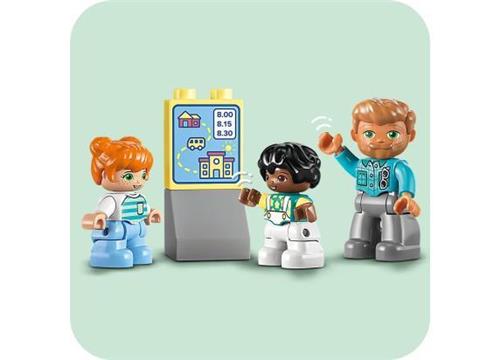 Kenmerken: Kleuters vanaf 2 jaar beleven een alledaags avontuur en leren fijne motorische en sociale vaardigheden met deze kleurrijke LEGO DUPLO Het busritje educatieve speelset, met een speelgoed bus en 3 DUPLO figuren. Dit bus speelgoed heeft een afneembaar dak dat kinderen kunnen openen voor makkelijke toegang, binnenin is er ruimte voor de 3 meegeleverde figuren - 2 kind figuren en een buschauffeur figuur. Peuters kunnen geduldig op het speelgoed bankje bij de halte wachten tot de bus komt, kijken wat voor lekkers ze in hun broodtrommeltje hebben en in de speelgoed bus springen om naar de kinderopvang te gaan. Met dit educatieve speelgoed oefenen peuters hun geduld terwijl ze wachten op de speelgoed bus, stellen ze zich voor hoe ze vriendjes maken met andere kinderen en oefenen ze hun fijne motoriek terwijl ze de minifiguurtjes in de bus plaatsen. Deze educatieve peuterspeelset wordt geleverd met veel accessoires - een bankje, een verkeersbord, broodtrommels, een klokkentoren en een bouwbare bloem, en is een geweldig cadeau voor peuters vanaf 2 jaar.