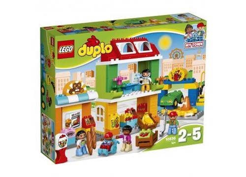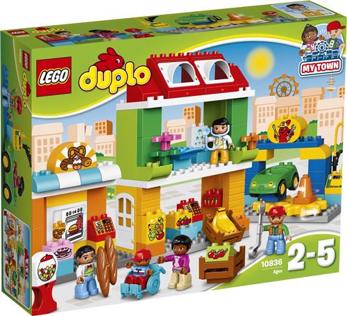Speel alledaagse gebeurtenissen na in LEGO DUPLO Mijn eigen stad: een herkenbare wereld met moderne DUPLO figuurtjes. Ga samen met je peuter op onderzoek uit op het stadsplein er is van alles te zien en te doen! Draai de tandwielen zodat de auto waar de monteur aan werkt kan ronddraaien, ga boodschappen doen bij de bakker en de groenteboer of ga naar de dokter voor een controle! Inclusief vijf LEGO DUPLO figuurtjes: een monteur, een winkelier, een dokter, een moeder en kind. Verzamel diverse producten uit de serie Mijn eigen stad en speel alledaagse gebeurtenissen na in een herkenbare LEGO DUPLO wereld.