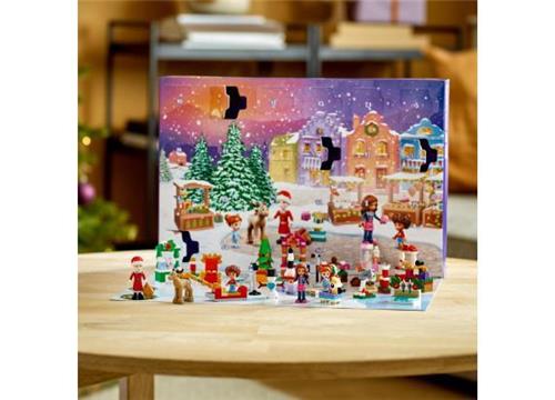 Elke dag ontdekken kinderen vanaf 6 jaar in de adventskalender een cadeautje met LEGO Friends thema. Bij de set zijn minipoppetjes inbegrepen van de kerstman en Olivia en haar familie, plus een figuur van een rendier en een slee vol met kerstcadeautjes. Er zijn allerlei activiteiten, zoals een kerstmarkt, schaatsen en karaoke. Kinderen kunnen een speelgoedauto of sneeuwpop bouwen, op de foto met de kerstman of winterse lekkernijen proeven op de markt. Samen vormen alle onderdelen in de set een knus kersttafereel, waarin Olivia met haar familie de kerstmarkt bezoekt.