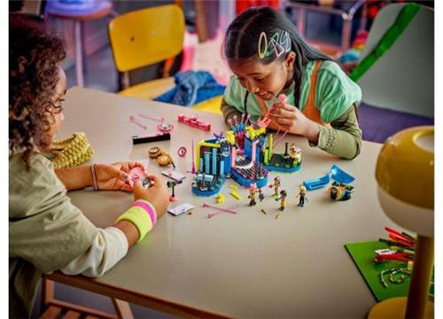 De set is aanbevolen voor kinderen vanaf 7 jaar en stimuleert creativiteit en rollenspel. Met in totaal 669 onderdelen, waaronder accessoires als een gitaar, schoenen, een pruik, een mobiele telefoon en meer, biedt deze speelset eindeloze mogelijkheden voor verhalen en avonturen. Daarnaast bevat de set 4 LEGO Friends personages, waaronder jurylid Andrea en muzikanten Ley-La, Nabil en Alexander. De afmetingen van het hoofdpodium zijn circa 22 cm hoog, 28 cm breed en 17 cm diep.
