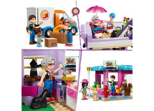 De set is inclusief 8 personages en 4 dierenfiguren, plus een verhuiswagen zodat kinderen kunnen spelen dat ze de nieuwe familie in de buurt verwelkomen. Dankzij de modulaire gebouwen in deze LEGO Friends set kunnen kinderen hun straat op talloze manieren vormgeven, zodat hij elke keer weer anders aanvoelt. Een superleuk cadeau voor kinderen vanaf 8 jaar. Deze veelzijdige speelset is een fantasierijk verjaardagscadeau voor LEGO Friends fans en voor kinderen die graag winkeltje spelen en het leuk vinden om hun speelgoed aan te passen.