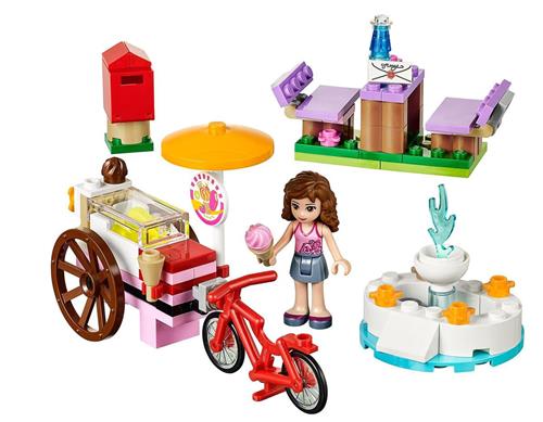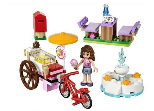 Rijd naar het Heartlake City Park en help Olivia haar ijskraam op te bouwen naast de mooie fontein. Maak je eigen LEGO chocolade-en aardbeienijsjes of haal een ijslollie uit de vriezer. Als de dag erop zit, kun je een geluksmuntje in de fontein gooien en daarna samen met Olivia een brief naar de postbus brengen. Inclusief 1 minifiguur met accessoires: Olivia. Aantal onderdelen in deze LEGO set: 98.