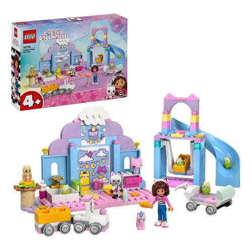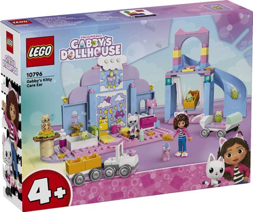 Met het LEGO Gabby's poppenhuis Gabby's kittendagverblijf 10796 beleven kinderen eindeloos speelplezier. Dit kleurrijke bouwset, geschikt voor kinderen vanaf 4 jaar, bestaat uit 165 onderdelen van hoogwaardig kunststof. Het poppenhuis is voorzien van een CE-markering en biedt zichtbaar genot aan de doelgroep: kinderen.