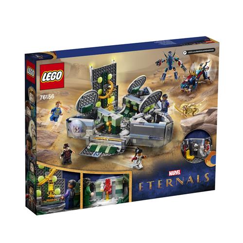 Verken samen met Makkari, Ikaris, Thena, Sersi, Druig en Phastos het ruimteschip van The Eternals. Via de zijpanelen krijg je toegang tot de binnenkant. Bekijk rustig de cockpit, de wapenkamer en het lab. Maar wanneer de leider van de Deviants samen met zijn handlanger tevoorschijn komt, is het tijd om het gevecht aan te gaan met het ruimteschip! En... dit is de enige set met Druig en Phastos, als je toevallig de LEGO® minifiguren van The Eternals verzamelt!