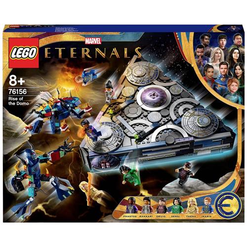 Met het LEGO® Marvel Opkomst van de Domo (76156) bouwspeelgoed neemt kinderen mee binnen in het ruimteschip van de Eternals en laat ze daarna eindeloze gevechten voeren tussen de superheldenminifiguren en de Deviant wezens. Inclusief 6 minifiguren (Makkari, Ikaris, Thena, Sersi en de exclusieve Druig en Phastos), 2 Deviant actiefiguren waaronder Kro (de leider van de Deviants), een ruimteschip, wapens en accessoires. Kinderen moeten al hun superheldenvaardigheden inzetten tijdens het beslissende gevecht tussen de Eternals en de Deviants.