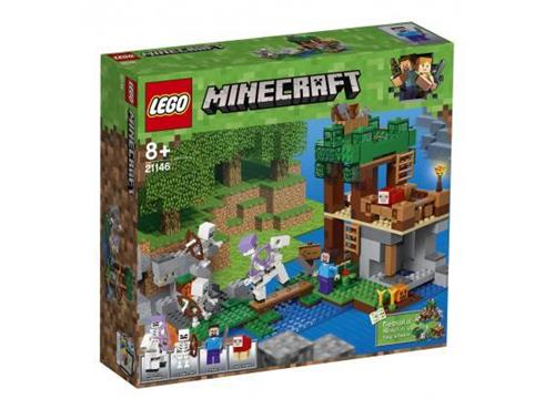 Bereid je voor om te vechten met LEGO Minecraft 21146 de skeletaanval! Je hebt de rand van het Minecraft bos bereikt na een flinke onweersbui. Er is een skelettenruiter, compleet met een betoverde helm en boog. Hij nadert langzaam aan de horizon samen met zijn leger skeletten. Bouw een schuilplaats met een werkbank, een bed en een oven... en maak je op voor de strijd! Smeed een stenen zwaard en bouw een valluik om de indringers te verrassen. Verzorg daarna je gewassen, scheer je rode schaap en wacht tot de skeletten aanvallen!