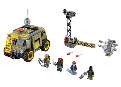 Vern en Raphael racen door de straten in de opgevoerde TurtleVan om Michelangelo te redden, maar de handlanger heeft de barricadepoort laten zakken om de weg te blokkeren. Gebruik de computer om hem te slim af te zijn en versnel maximaal om door de barricade heen te breken. Open de zijdeuren om de verborgen raketten af te schieten en vuur de dakraketten af om de gastank te raken en de poort op te blazen. Wanneer je Michelangelo vindt, maak dan de mechanische armen los die hem vasthouden op de brancard en ga er met volle Turtle Power vandoor. Inclusief 4 minifiguren met wapens en accessoires: Vern, handlanger, Raphael en Michelangelo. Aantal onderdelen in deze LEGO set: 368.