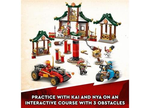 De speelset is inclusief 6 minifiguren: Nya, Kai, Meester Wu, vrouwelijke en mannelijke leerlingen en Bottenjager, allemaal bewapend. Dit is de eerste keer dat een NINJAGO set wordt geleverd in een opbergdoos om kinderen te inspireren hun verbeeldingskracht te gebruiken en hun eigen gebouwen en voertuigen te bouwen. Het is ook een ideale manier om snel en gemakkelijk op te ruimen.