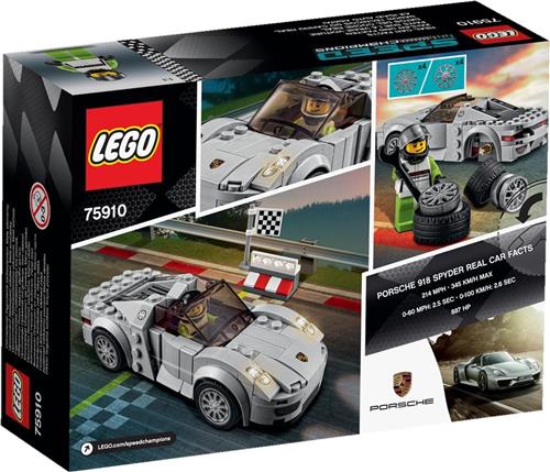 - Bij Toychamp kun je LEGO Speed Champions Porsche 918 Spyder - 75910 kopen voor de prijs van € 14,99. Dit is vandaag de goedkoopste webshop.