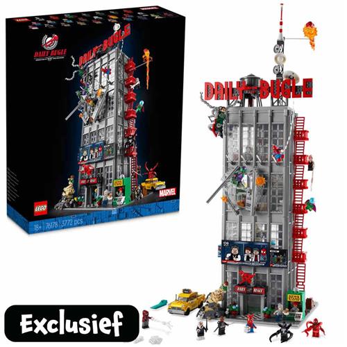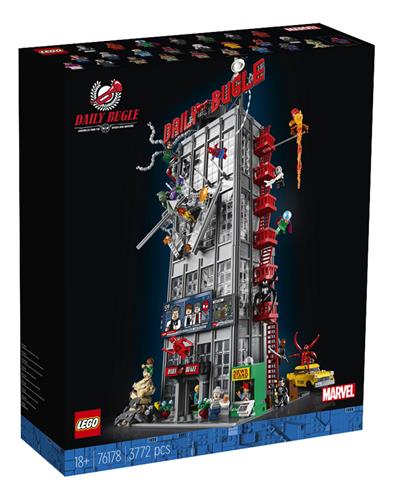 LEGO Marvel Spider-Man Daily Bugle (76178) brengt 25 klassieke personages uit de Spiderverse samen in een fantastisch bouw- en displayproject voor volwassenen. Een 4 verdieping tellende ode aan het Marvel Universum. Met een hoogte van ca. 82 cm vormt deze 3772-delige versie van het hoofdkantoor van de Daily Bugle de torenhoge achtergrond voor een sterrencast van Marvel helden en schurken, waarvan er veel voor het eerst in een LEGO set te vinden zijn! Het gebouw bevat talloze authentieke details, fascinerende functies en klassieke stripheldenactie van de gele taxi uit New York tot het penthousekantoor van de hoofdredacteur van de Daily Bugle. Marvel fans zullen helemaal opgaan in dit uitdagende bouwproject. Als het af is, kan iedereen de afneembare verdiepingen, daken en gevels bewonderen.