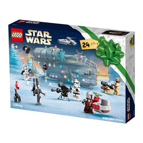 Geef voorpret voor de kerstdagen cadeau met de LEGO Star Wars adventkalender (75307) voor 2021 met bouwbare personages, voertuigen, wapens en accessoires uit seizoen 2 van Star Wars: The Mandalorian. Inclusief 7 LEGO Star Wars personages, waaronder The Mandalorian en het Kind (Grogu), ook wel liefkozend Baby Yoda genoemd, beide in kerstkleding, plus een Tusken Raider, IG-11 en IT-O Interrogator Droid. Met 11 bouwbare minimodellen, waaronder de Razor Crest, Riot Mar's starfighter, een Imperial Troop Transport, X-wing, TIE Fighter, Imperial Light Cruiser, Boba Fett's ruimteschip en de zweefkinderwagen van het Kind.