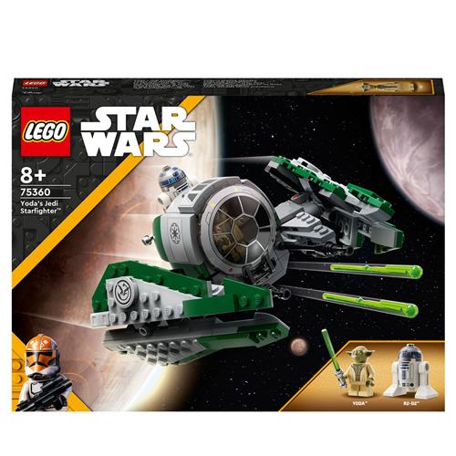 Kinderen kunnen een sterrenstelsel hier ver, ver vandaan verkennen met 2 populaire Star Wars personages dankzij de gedetailleerde LEGO versie van Yoda's Jedi Starfighter (75360). Dit bouwspeelgoed biedt eindeloos speelplezier en avontuur voor kinderen van 8 jaar en ouder die fan zijn van Star Wars: The Clone Wars. Het model is voorzien van een cockpit die open kan voor de LEGO minifiguur van Meester Yoda, ruimte voor de R2-D2 LEGO droidfiguur, 2 schieters met veermechanisme en verstelbare vleugels voor zowel de vlieg- als landingsmodus.