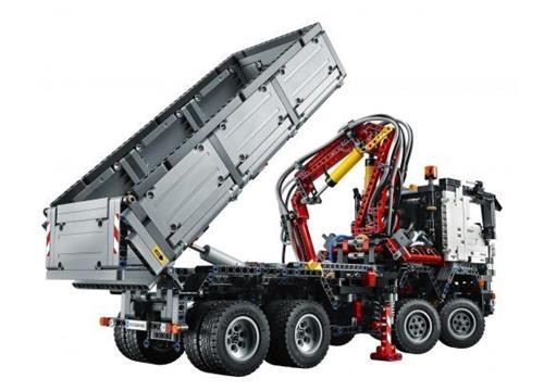 Klim achter het stuur van de machtige Mercedes-Benz Arocs 3245! Dit grote, stevige 2-in-1 LEGO Technic model zit boordevol realistische details en functies. Start de bijgeleverde grote Power Functions motor en activeer het geavanceerde pneumatische systeem voor volledige controle over een reeks fascinerende functies. Activeer het superwendbare kraanarm-mechanisme en laat de grijper open en dicht gaan, de steunvoeten naar buiten schuiven en de kiepbak omhoog en omlaag komen! Met twee-assige besturing, dubbel differentieel en volledig onafhankelijk verende wielen voor weergaloze wendbaarheid. De bestuurderscabine kan kantelen waardoor de gedetailleerde 6-cilinder motor met bewegende zuigers zichtbaar wordt.