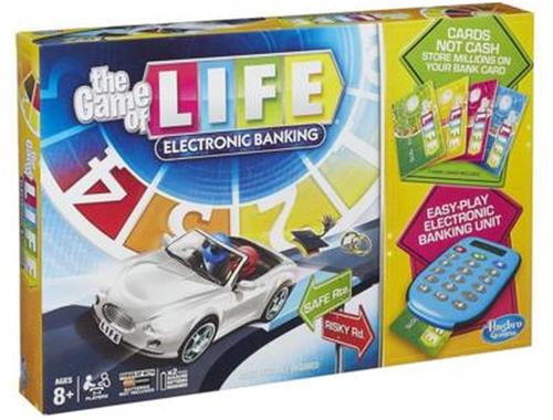 Bij Levensweg Elektronisch Bankieren gebruik je pasjes om te betalen. In deze moderne versie van het bekende spel Levensweg regel je alle geldzaken met de elektronische geldautomaat. Geen cash geld, maar bankpasjes dus! Bewaar je miljoenen op je bankpasje en rij met je auto van start tot pensioen. Kies je levensweg en je stapt in een spel boordevol avontuur, gezinsleven en onverwachte verrassingen. Als iedereen gepensioneerd is, wint de rijkste speler.