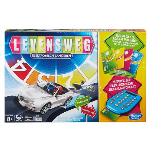| Verpakkingsinhoud | Levensweg Elektronisch Bankieren; Speelbord; Draaiwijzer; 5 draai & win fiches; 4 auto's; 4 stapeltjes kaarten; 1 betaalautomaat; 4 elektronische bankpasjes |