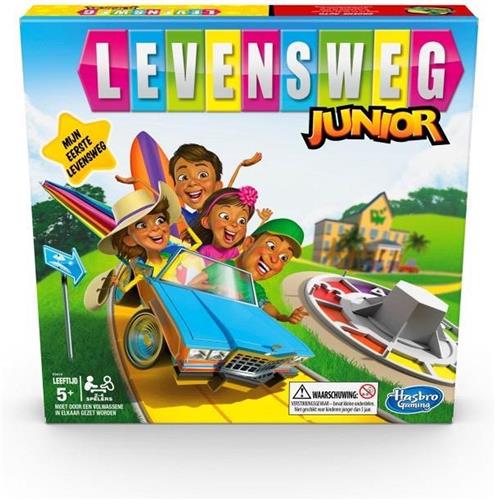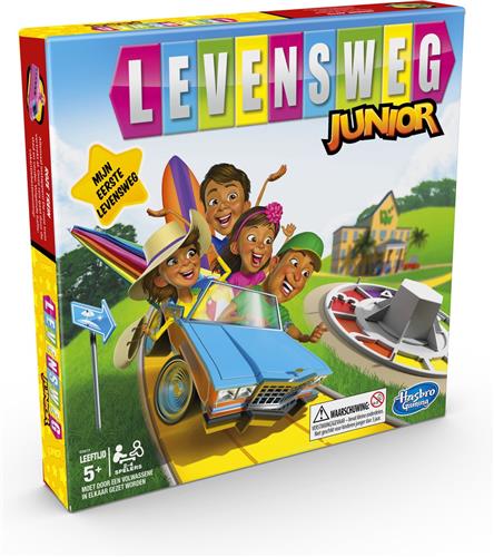 In Levensweg Junior kies je je eigen avonturen en je eigen weg! Levensweg Junior is een leuke, makkelijke manier om Levensweg te spelen. Dit grappige, snelle spel werkt net als de versie voor volwassenen, maar met veel coolere autootjes en attracties. Kies uit de Blauwe Wieler, de Roze Cabrio, de Gele Racer of de Groene Rijder en start je eigen leven. Geniet van je tijd aan het strand of in de dierentuin jij kiest! Verzamel sterren en kijk hoe de actiekaarten en de attracties, zoals het Pretpark of de Chocoladefabriek, je lot kunnen veranderen. Als jij als eerste 10 sterren hebt win je. Ben je op een geel actievakje geeindigd? Actiekaarten leveren sterren of geld op! Maar bij sommige actiekaarten moet je sterren of geld weggeven. Je moet verhaaltjes vertellen, dingen uitbeelden, en misschien zelfs wel een liedje zingen!