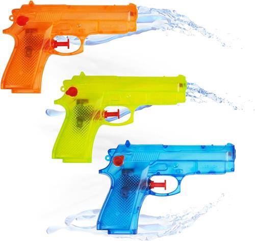 Maak je klaar voor eindeloos veel waterplezier met de Lexium Waterpistoolset! Deze set bestaat uit drie compacte waterpistolen in vrolijke, gemixte kleuren. Elk pistool is ca. 15 cm groot, wat perfect is voor kinderhandjes. Dankzij het handige pompmechanisme kunnen kinderen ze eenvoudig bedienen, zonder dat er batterijen aan te pas komen.