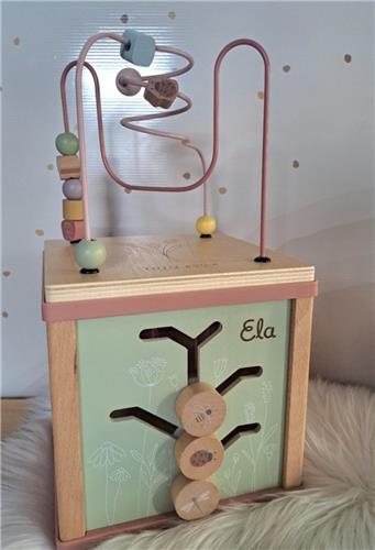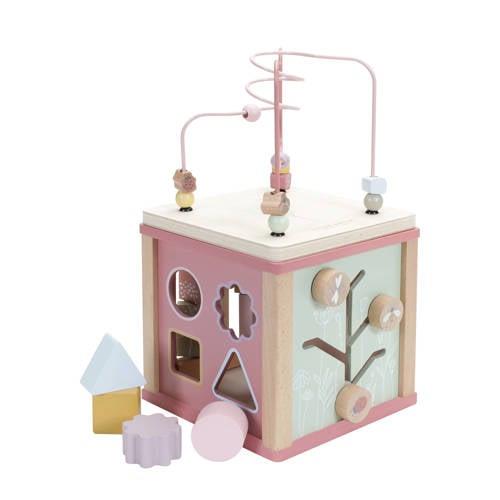 De Little Dutch Activiteitenkubus FSC zorgt voor volop uitdagingen voor je kindje. Iedere kant is voorzien van mooie Wild Flowers illustraties en biedt een leerzame activiteit zoals een vormenstoof, draaiende tandwielen, puzzels en bovenop een leuke kralenspiraal. Bij elke activiteit ontwikkelen kinderen hun fijne motoriek en worden ze aangemoedigd om hun creativiteit te gebruiken. Dit speelgoed wekt nieuwsgierigheid bij kinderen op en zorgt voor veel speelplezier.
