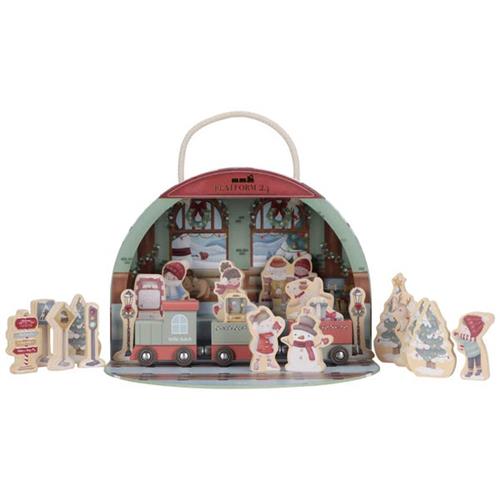 Tel samen af naar kerst met de Little Dutch Advent Kalender Treinbaan! Deze unieke adventskalender in de vorm van een treinstation brengt iedere dag in december een nieuwe verrassing. In de stevige koffer zijn 24 verrassingsdoosjes verstopt, elk gevuld met houten onderdelen of accessoires. Van een sfeervolle trein en een prachtige kerstboom tot een rendier, sneeuwpop, verkeersborden en bagage; elke dag komt het kerststation stap voor stap tot leven.
