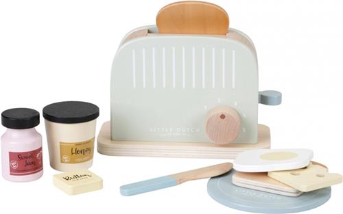 Met de Little Dutch Houten Broodrooster kan je kindje zich urenlang vermaken! Dankzij het houten keukenapparaat komt de fantasie van je kindje tot leven en kan het net als papa en mama 'brood roosteren'. De broodrooster wordt geleverd met een bijpassend bordje en mes die je kindje kan ontdekken. Ook is er gedacht aan de accessoires zoals een gebakken eitje, stukje kaas en boter, twee sneetjes brood, potje honing en aardbeienjam. Je kindje kan aan het knopje draaien om het broodje te roosteren en op de knop aan de zijkant drukken om het broodje omhoog te schieten. Verder is de broodrooster gemaakt van hoogwaardig materiaal en veilig voor je kindje om mee te spelen.