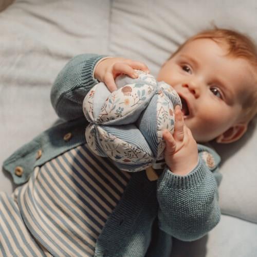 De Little Dutch Grijpbal - Forest Friends is een leuke en uitdagende bal voor je kleintje om te ontdekken. Met zijn interessante vorm en vlakken van verschillende texturen en patronen, stimuleert de bal de zintuigen en nodigt uit om te grijpen en te verkennen. De verschillende leuke labels zijn makkelijk vast te pakken door kleine handjes en houden je baby actief bezig in de box. Het vrolijke geluid van het rammelende belletje zal je baby belonen voor zijn inspanningen.