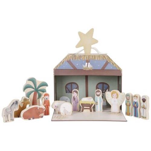 Met deze mooie Little Dutch kerststal kunnen jonge kinderen kennismaken met het kerstverhaal. De speelkoffer is gevormd als een kerststal en bevat 14 figuren uit het traditionele kerstverhaal, waaronder Kindje Jezus in de kribbe, de herder met zijn schaapjes, de drie koningen en Jozef en Maria. De kerststal is 24.5 cm breed, 20.2 cm hoog en 9.8 cm lang, en opent en sluit met een magneetstrip. De houten kerstfiguren variëren in grootte, waarbij Kindje Jezus in de kribbe 5.35 cm breed, 5.5 cm hoog en 1.2 cm lang is. Daarnaast bevat de set een kartonnen ster van Bethlehem die op de kerststal kan worden geplaatst.
