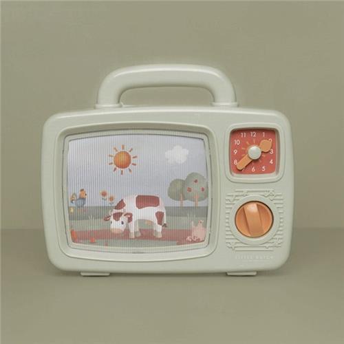 Ontdek de betoverende wereld van het boerderijleven met de opwindbare Little Dutch Muziek TV Little Farm! Dit retro speelgoed komt met een vrolijke melodie en bewegende beelden die je kleintje zeker zullen fascineren. Draai aan de knop en laat je verrassen door de prachtige illustraties van boerderijdieren, zoals kippetjes, koeien en de klassieke tractor. Dit unieke speelgoed brengt een vleugje vintage charme naar de kinderkamer, terwijl het ook educatieve waarde biedt.