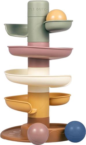 De kleinste bouwers beleven een hoop plezier aan de Little Dutch Spiraaltoren. Stapel de 5 gekleurde delen op elkaar en laat de ballen maar naar beneden rollen. Spannend! De verschillende delen vormen samen een soort kleurrijke glijbaan. Iedere laag heeft een opening aan één zijde, waardoor de bal op de laag daaronder terecht komt. Bouw de Little Dutch Spiraaltoren iedere keer anders op, zodat het altijd weer een verrassing is hoe de ballen naar beneden glijden. Behalve het stimuleren van de hand-oog coördinatie, leert jouw kleintje zo ook over oorzaak-gevolg. De Little Dutch Spiraaltoren is in 2 kleurrijke uitvoeringen verkrijgbaar, waarvan 1 met blauwtinten en 1 met roze tinten. Zelf bouwen, vrolijke kleuren en rondslingerende ballen die zelfs een geluidje wanneer ze naar beneden rollen. Alle ingrediënten voor oneindig speelplezier! Kenmerken.