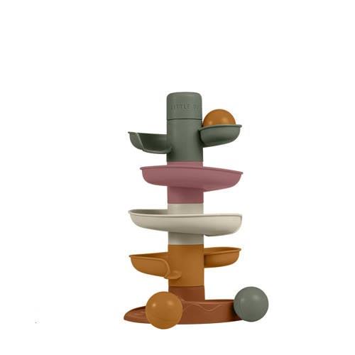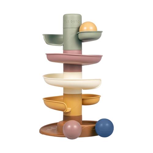 De Little Dutch Spiraaltoren Vintage zorgt voor eindeloos veel speelplezier. Deze kleurrijke set bestaat uit 5 gekleurde delen die jouw kindje makkelijk op elkaar kan stapelen. Laat de ballen een voor een vallen en kijk hoe ze achter elkaar naar beneden rollen. De spiraaltoren draagt bij aan de ontwikkeling van de hand-oog coördinatie van je kindje, waardoor het zowel leuk als leerzaam spelen is. Bij de spiraaltoren zitten 3 balletjes die gemakkelijk vast te pakken zijn en geluidjes maken.