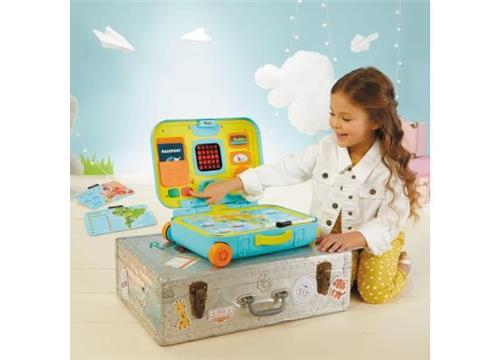 Kinderen kunnen de instapkaart en het paspoort scannen om liedjes, geluiden en zinnetjes te activeren die een reisrollenspel stimuleren. Met de inbegrepen witteboardstift kunnen ze op elke kaart verschillende leeractiviteiten ontdekken. De magische kaartlezer neemt kinderen mee op reis naar belangrijke bezienswaardigheden, voedingsmiddelen en dieren van alle 7 continenten, waardoor hun bewustzijn over de wereld wordt vergroot.