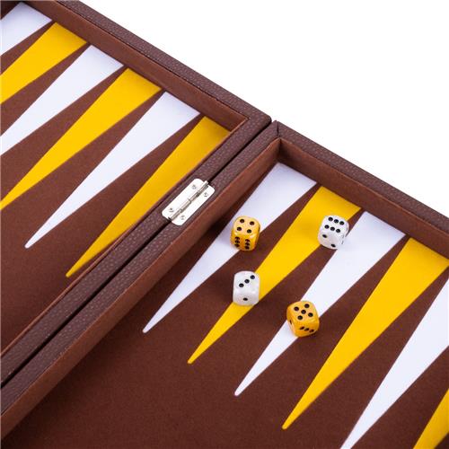 Longfield Backgammon 15 , bruin/geel/wit ingelegd vilt