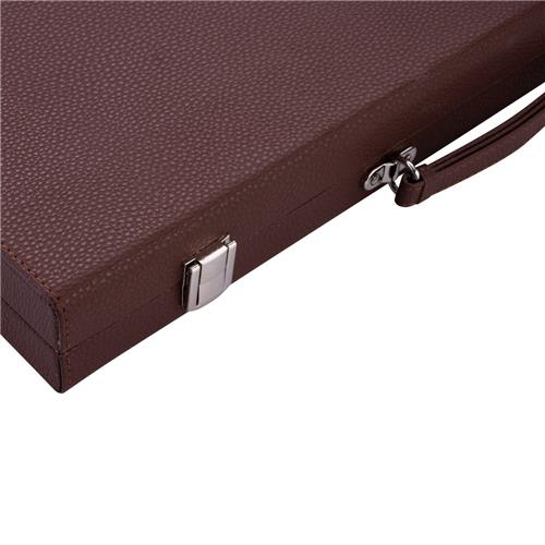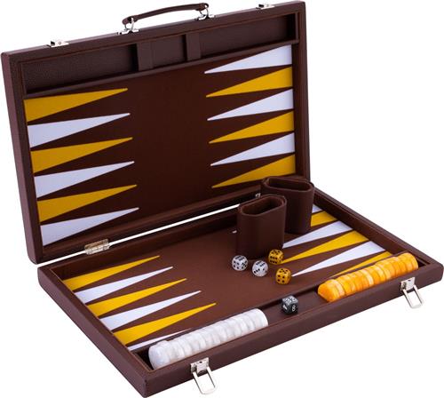 De Longfield Backgammon van 15 inch is ingelegd met de kleuren bruin, geel en wit. Het spel zit verpakt in een luxe bruine koffer met handvat. Met een verpakkingsgewicht van 1.78 kg is deze backgammon gemakkelijk mee te nemen en te spelen onderweg. De speeltijd van het spel is 30 minuten, ideaal voor korte potjes. Het spel wordt geleverd met backgammon stenen en dobbelstenen zodat je direct kunt beginnen met spelen.