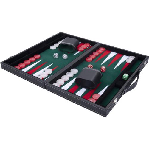Longfield Backgammon 15inch groen, rood en wit ingelegd vilt