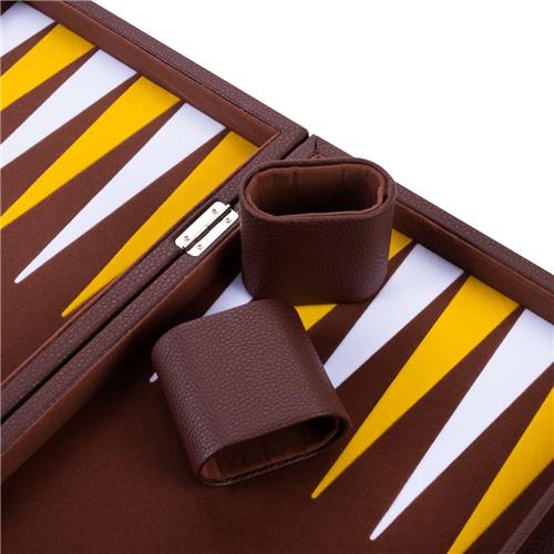 Longfield Backgammon 18 , bruin/geel/wit ingelegd vilt
