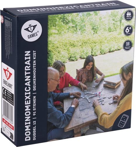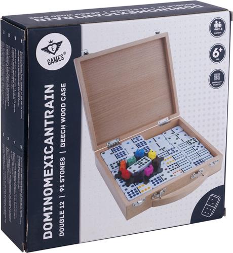 Longfield Games Domino Mexican Train dubbel 12 actiespel in beuken kist