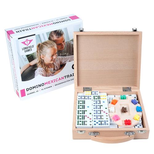 - Bij Bol.com kun je Longfield Games Domino Mexican Train dubbel 12 actiespel in beuken kist kopen voor de prijs van € 29,58. Dit is vandaag de goedkoopste webshop.