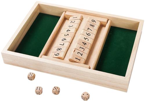 - Bij Bol.com kun je Longfield Games Shut the box bordspel, 2 spelers, inclusief 4 houten dobbelstenen. Afm. 34 x 24 x 4 cm kopen voor de prijs van € 10,99. Dit is vandaag de goedkoopste webshop.